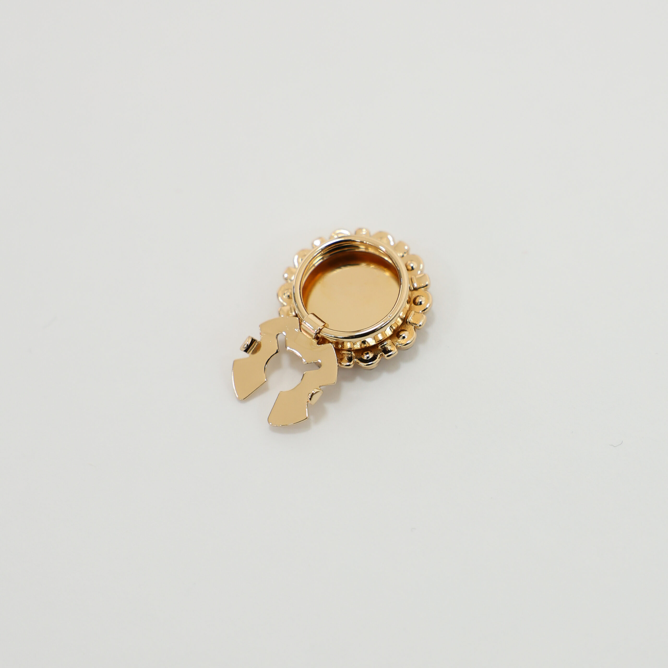 Design a medaglione con cristallo centrale e cornice di micro-cristalli: elegante, luminoso e super femminile.