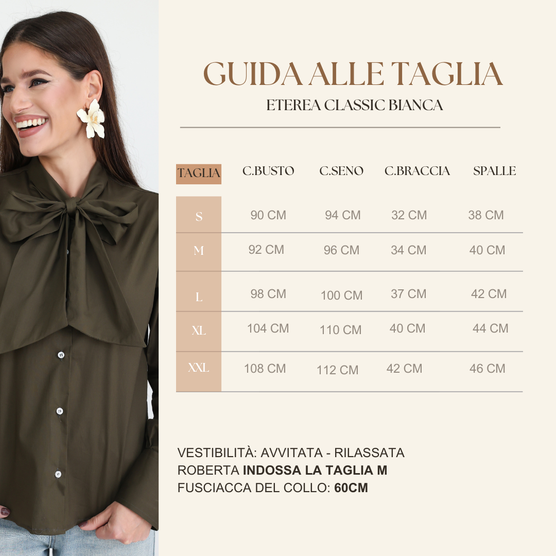 Per maggiori dettagli consulta la Guida alle Taglie.